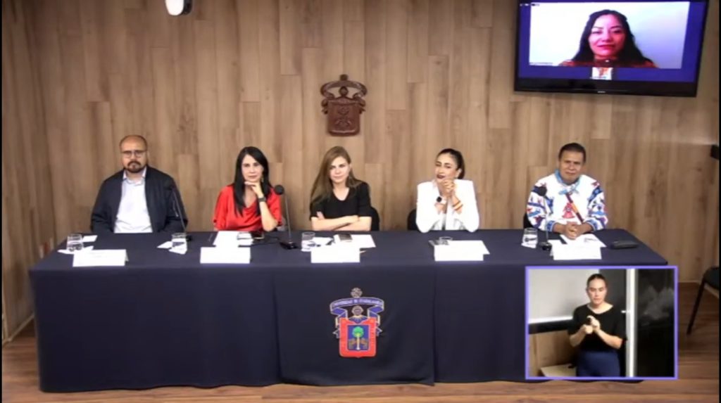 La rectora general de la UDG, Karla Planter Pérez, encabezó la ceremonia que contó con la presencia de autoridades universitarias y representantes de instituciones culturales. La lectura del acta de dictamen estuvo a cargo de Cessia Esther Chuc Uc, integrante del jurado.
