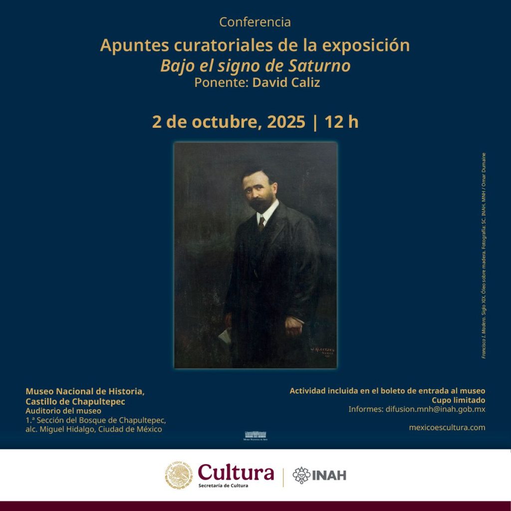 El Museo Nacional de Historia, Castillo de Chapultepec, fungió como foro para la reflexión especializada, al ser la sede de la conferencia “Apuntes curatoriales de la exposición Bajo el signo de Saturno”. El encuentro, que registró una nutrida afluencia en su auditorio, contó con la magistral ponencia del historiador David Caliz, quien se abocó a desentrañar las profundas implicaciones intelectuales y los ejes conceptuales que dan forma a la significativa muestra temporal que se exhibe en el MUNAL.