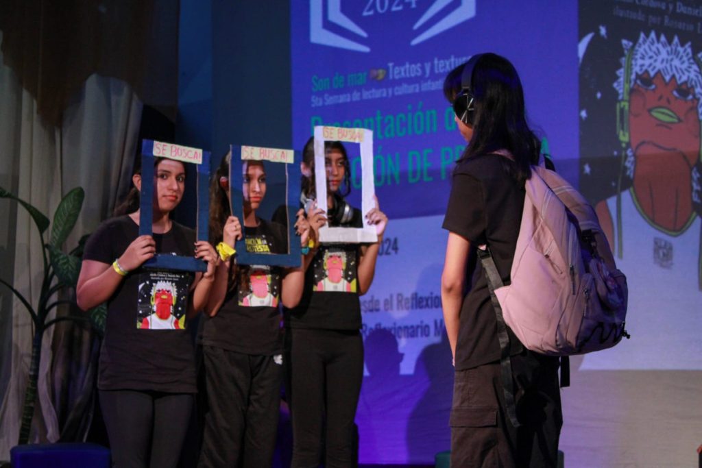 La profesora Azamar cuenta que ella y sus alumnos hicieron una playlist de la novela, antes de enterarse de que ya existía una. También le pidió a cada estudiante que eligiera un cartel de desaparecido y escribieran una carta para la persona de la foto. Al eco del micrófono, leen dos de ellas: a Vanessa y a Fátima Cecilia, y de nuevo sentimos un regusto salado en la retina.